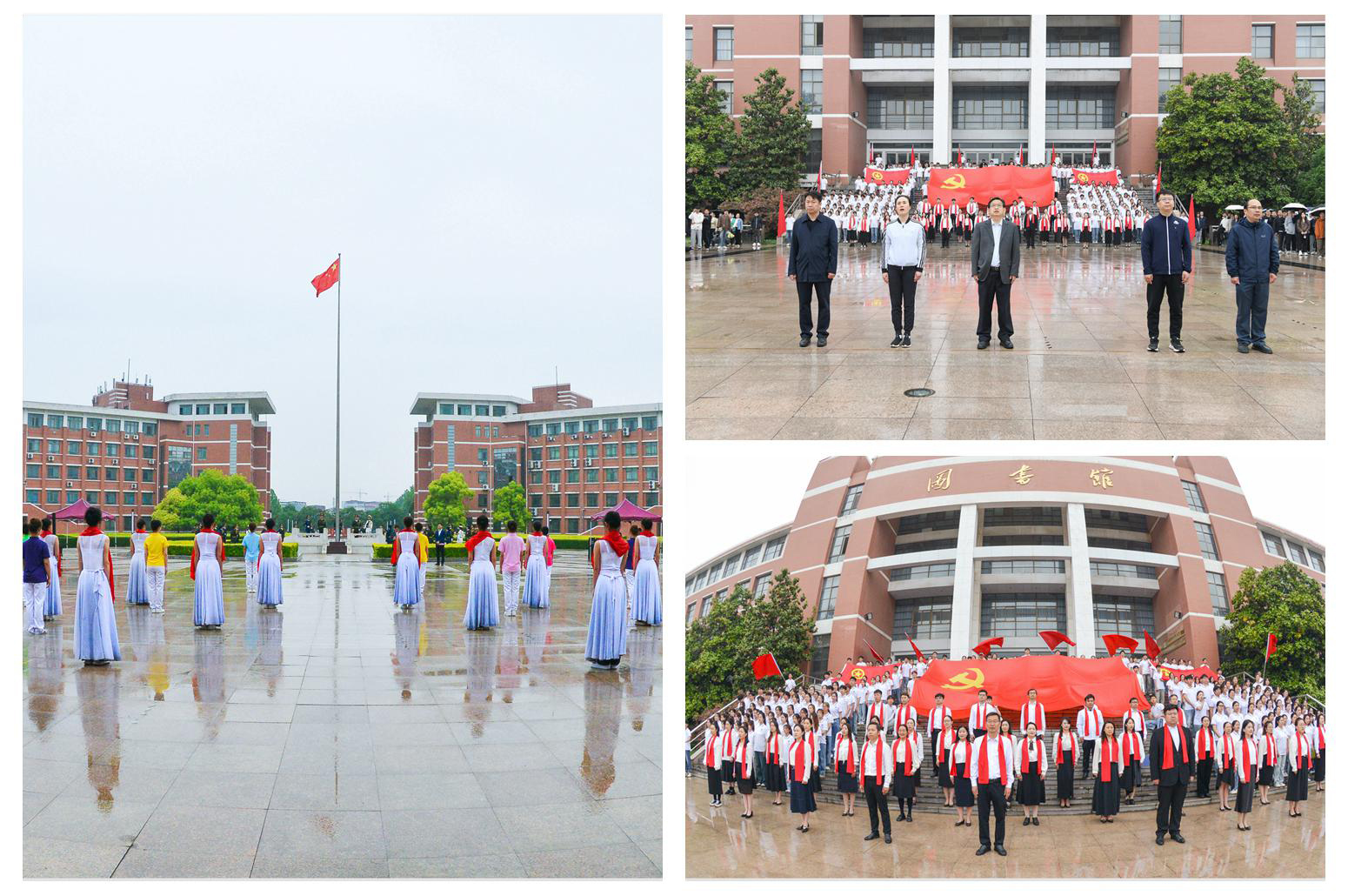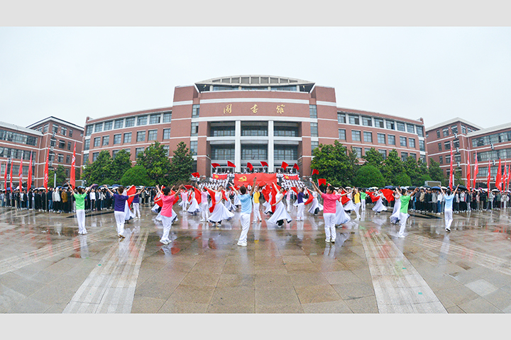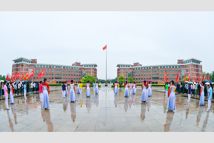 升旗仪式上,音乐学院师生以歌舞形式演绎了歌曲《光荣啊,中国共青团》,庆祝“五四”青年节。