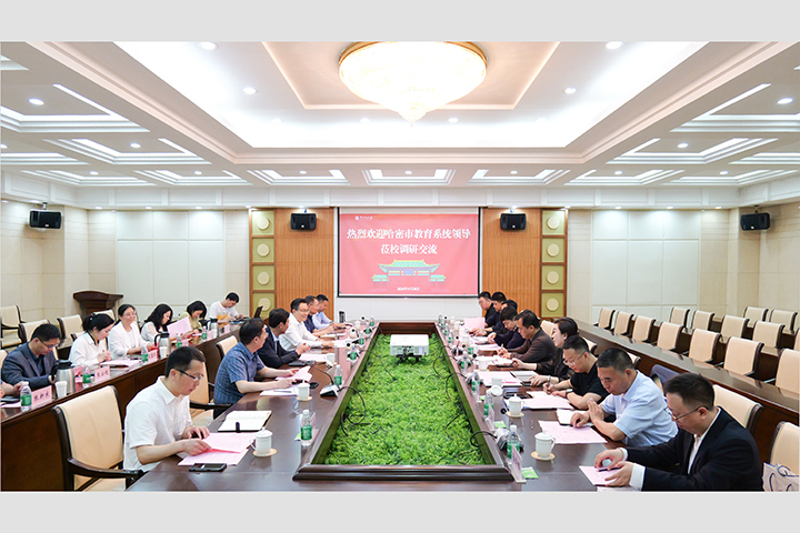 本网讯(记者 苏丽敏/文 通讯员 李英键 李进展/图)4月28日,哈密市委副秘书长、教育工委常务副书记王强率哈密市教育系统代表团莅校调研交流,河南省教育厅二级巡视员胡万欣陪同调研。学校在力行楼一楼会议室举行座谈会,副校长程伟出席会议。会议由人事处处长张光胜主持。