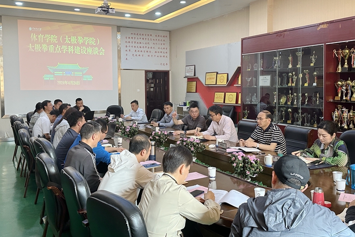 本网讯(通讯员 邱辉 孙瑞佳 岳子栋)4月24日下午,校长赵同谦到体育学院调研太极拳重点学科建设工作并召开座谈会。体育学院相关领导,系(室)负责人及骨干教师,校办、国际处、研究生院、教务处等单位负责人参加。会议由该院党委书记张纳新主持。