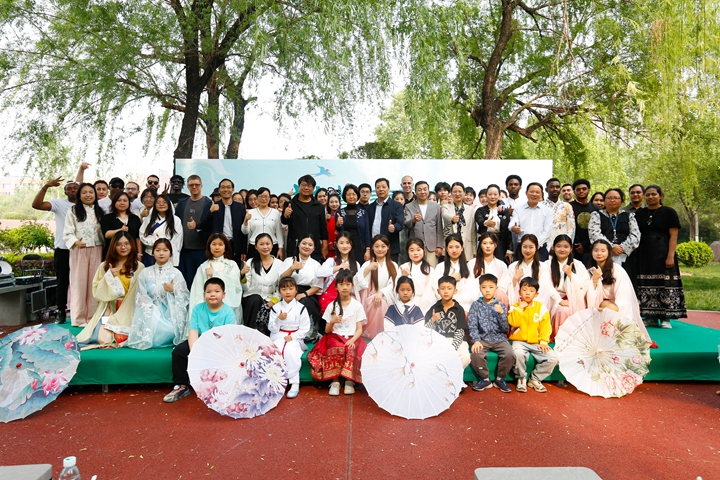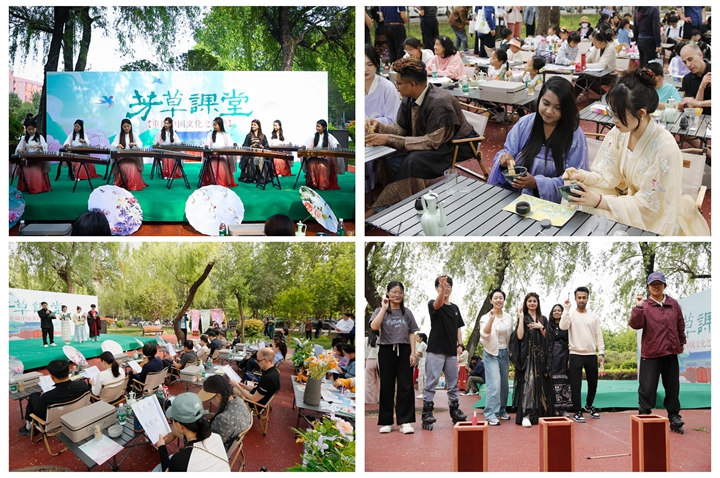 本网讯(通讯员 王天琪)书香流动文化园,清音绕梁享春光。时值谷雨,第15个联合国中文日如期而至。为积极响应中外语言交流合作中心与中文联盟庆祝2024“国际中文日”活动倡议,4月20日下午,学校在南校区历史文化园隆重举行主题为“芳草课堂——重温中国文化之经典”的2024年国际中文日活动。本次活动由国际处(国教院)主办,文法学院、太极拳学院、音乐学院参与,副校长程伟出席活动,统战部、国际处(国教院)、学生处、研究生院、后勤保障部、文法学院、太极拳学院等单位负责人与百余名中外师生共同参加。