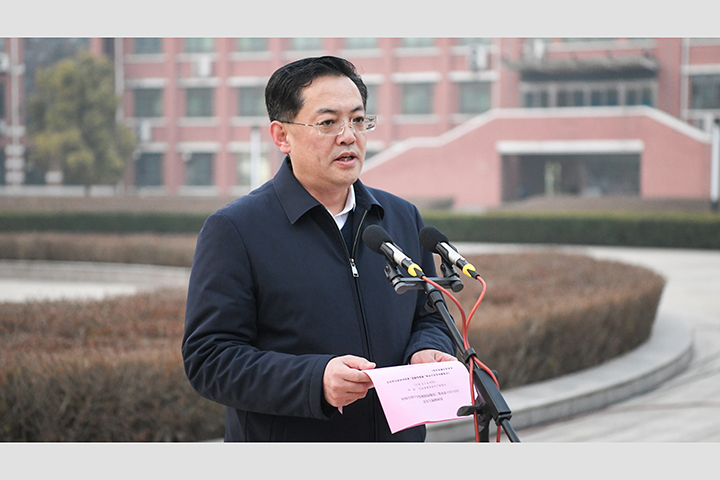 校党委书记邹友峰代表学校向全体师生致以新学期的问候,总结回顾了2023年学校事业发展取得的成绩,并对全校师生提出三点希望:一是筑牢信仰之基,厚植爱国情怀,希望全体教师大力弘扬践行教育家精神,努力成为“四有”好老师、新时代“大先生”,着力培养德智体美劳全面发展的社会主义建设者和接班人。二是练就过硬本领,增长知识才干,希望同学们惜时如金、孜孜不倦,自觉把“读万卷书”与“行万里路”结合起来,在学术研究、创新实践中探究新问题、增长新才干,以脚踏实地打牢学业根基,以创新思维练就过硬本领,努力把学业的基石打深、打牢。三是放飞青春梦想,书写奋斗华章,希望同学们时刻保持奋斗的姿态和热情,在奋斗中释放青春激情、追逐青春梦想,以青春之我、奋斗之我,在百舸争流、千帆竞进中实现人生价值,为民族复兴铺路架桥,为教育强国建设添砖加瓦。