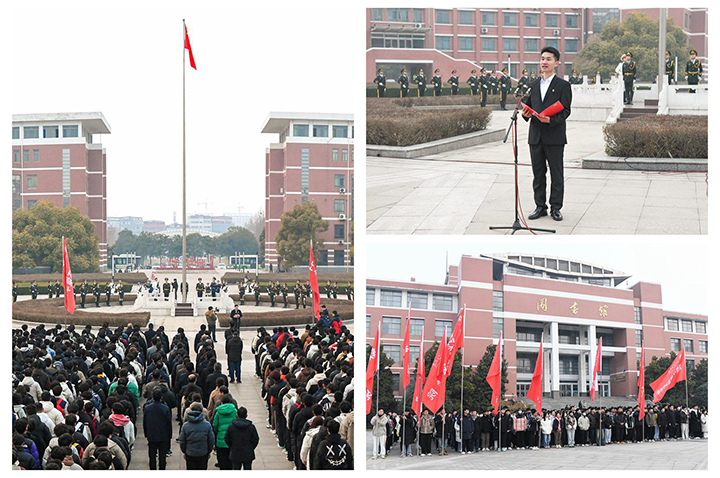 本网讯(通讯员 李静 赵琨/文 记者 李为群/图)2月26日,学校在南校区举行新学期开学升国旗仪式。校领导邹友峰、赵同谦、解伟、翟耀南、程伟、李振华出席升国旗仪式,全体处级干部、各学院(书院)专职辅导员和学生代表3000余人参加升国旗仪式。升国旗仪式由校党委副书记解伟主持。