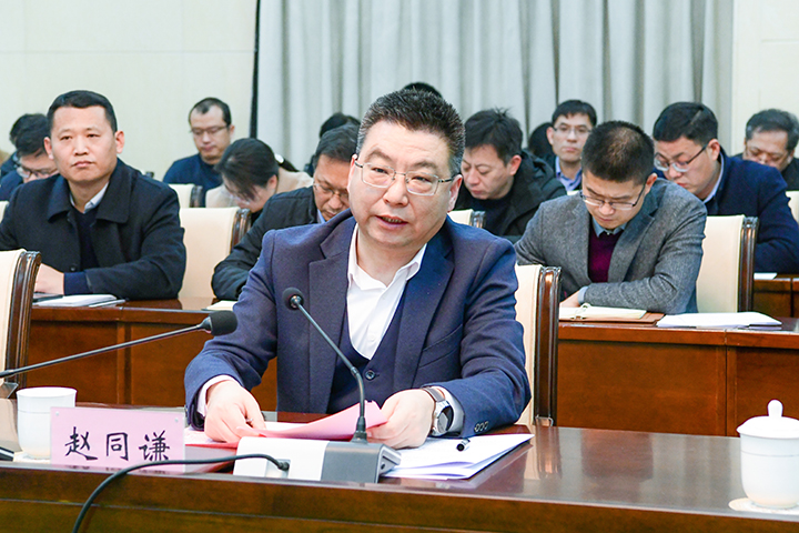 赵同谦在讲话中指出,开展审核评估工作是推动学校内涵发展、特色发展、创新发展,提高本科人才培养质量,加快学校“双一流”创建和“国内一流特色高水平大学”建设的重要契机。为进一步推进审核评估的各项评建工作,赵同谦提出三点意见:一是提高政治站位,充分认识审核评估的重要意义。新一轮审核评估是国家提升教育管理效能的手段,也是学校下一步推进学科、专业布局调整的重要依据。各部门要把此次评估当作一次全面的“体检”,发现教育教学过程中存在的问题,进而持续改进,不断优化人才培养过程、强化教学资源建设、提升师资队伍水平、完善教学质量保障体系,实现学校高质量内涵式发展。二是狠抓落实,切实做好学院层面评估整改工作。各学院要根据专家组检查结果和反馈意见,制定详细的整改方案,注重对学术型人才进行支撑,同时总结教学科研、人才培养、立德树人、教学管理等方面好的经验做法,形成学院层面的典型示范案例。三是压实责任,高质量完成学校寒假前后评建工作。学校迎评工作在即,各部门要充分利用寒假时间,准备迎评材料,完善教育教学管理制度文件,强化校园环境和信息化条件建设,为线上评估与入校考察阶段做好准备。