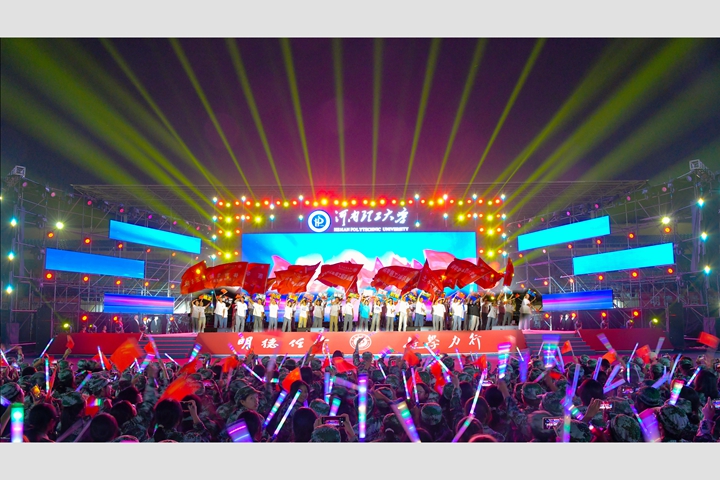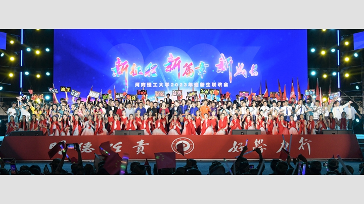 本网讯 (通讯员 刘鹏杰 马雨彤 赵亚楠/文 记者 李为群/图)清朗秋风迎丹桂,青春荣光踏歌行;百年学府植沃壤,莘莘学子扬帆起航。9月21日晚,河南理工大学“新征程新篇章新成长”2023级迎新生联欢会在南校区东区体育场隆重举行。校领导杨小林、石培哲、赵晓军出席联欢会,学校相关职能部门、各学院负责人,新生军训教官和万余名师生共览盛会。