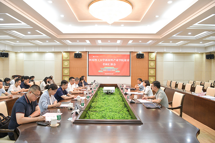 本网讯(通讯员 徐志超/文 记者 李为群/图)近日,由洛阳理工学院副校长丁梧秀任组长的省教育厅专家组一行3人莅校对我校新材料产业学院建设工作进行考核。学校在力行楼一楼会议室召开汇报会,副校长赵同谦出席会议,多氟多新材料股份有限公司、教务处、材料学院相关负责人以及相关骨干教师参加会议。会议由教务处处长牛海鹏主持。