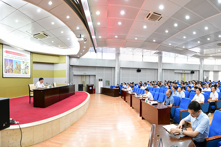 本网讯(记者 苏丽敏/文 李为群/图)7月12日,学校主题教育第二期读书班开班。校党委书记邹友峰作题为《牢牢把握中国式现代化理论体系 扎实推进“双一流”创建的新实践》的专题党课。校长杨小林、副校长翟耀南出席,校党委副书记石培哲主持。全体处级干部参加学习。