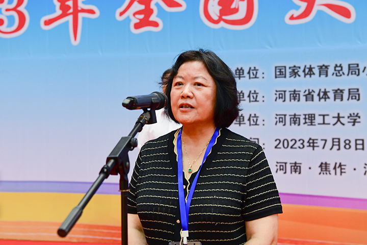 王延梅宣布2023年全国大学生掷球锦标赛开幕。