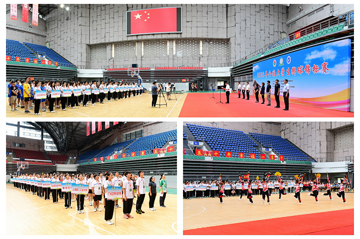 本网讯(记者 苏丽敏/文 李为群/图)7月12日,2023年全国大学生掷球锦标赛开幕式在学校体育馆主馆成功举办。中国掷球协会主席、原国家体育总局小球管理中心副主任王延梅,河南省体育局副局长孙晓红,河南省全民健身中心主任贾占波,焦作市体育局局长邓耀河,焦作市体育局副局长李立,中国掷球学院院长、西安体育学院休闲运动学院院长杨建设,中国掷球协会秘书长宋华勋,比赛仲裁(原中国掷球学院院长)雷甲谋,校长杨小林等出席开幕式。