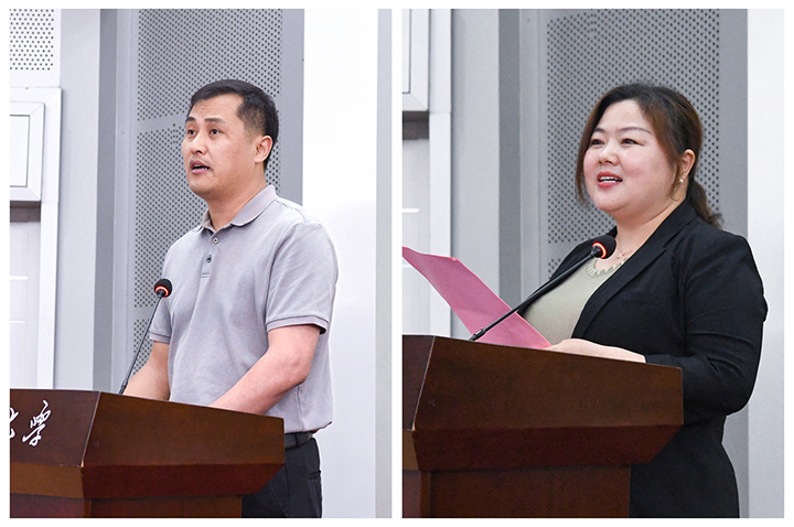 校纪委书记陈自录宣读了《河南理工大学关于表彰2022年度毕业生就业工作先进集体和先进个人的决定》,主席台就坐领导为获奖代表颁奖。随后,财经学院党委副书记张良作先进集体代表发言,机械学院辅导员路好作先进个人代表发言。