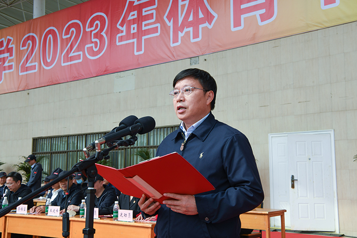 校长杨小林致开幕辞。他指出,学校一直以来十分重视体育工作,以坚持立德树人根本任务、提升学生综合素质为基础,积极推进体育工作改革创新和特色发展,深入持续开展体育活动,对于培养学生爱国主义、集体主义、社会主义精神和奋发向上、顽强拼搏的意志品质具有积极促进作用。他表示,近三年来,学校体育教研、群众体育活动开展、高水平运动竞技、太极拳特色区域文化构建等取得了丰硕成果,进一步提高了学校的知名度和美誉度。他强调,今年的体育节是后疫情时代学校举办的第一项大型赛事,是检验学校群众性体育工作成果、提升训练竞赛水平和竞赛组织管理能力的重要平台。希望运动员赛出竞技水平、释放青春活力,裁判员实事求是、秉公执裁,全体工作人员各尽其职、周到服务,共同将本次体育节暨运动会办成文明、和谐、热烈、精彩的体育盛会。全体师生要以此次运动会为契机,进一步增强健身意识,用拼搏和汗水共同书写追梦故事,为建设国内一流特色高水平大学,为实现体育强国、健康中国建设目标贡献智慧和力量。