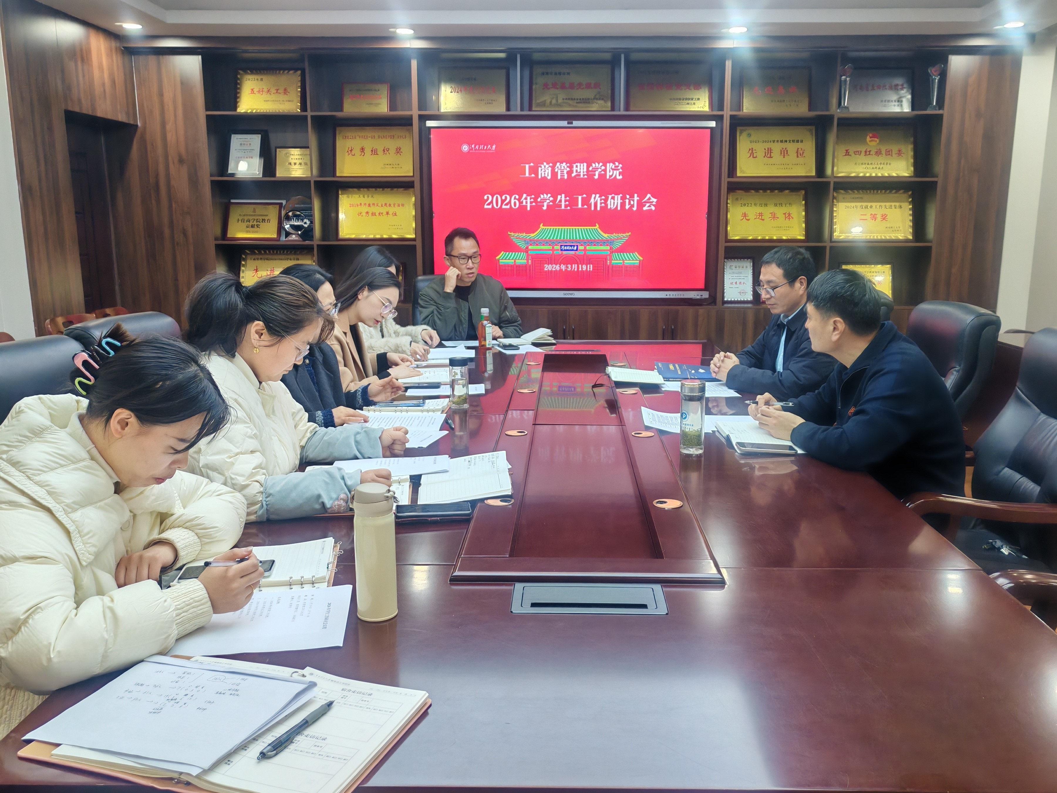 为全面总结2025年学生工作经验,科学谋划2026年工作,推动学生工作提质增效,3月19日下午,工商管理学院在经管楼2201会议室召开2026年学生工作研讨会。学院党委书记郭学鹏、党委副书记赵伟利出席会议,全体辅导员参加。