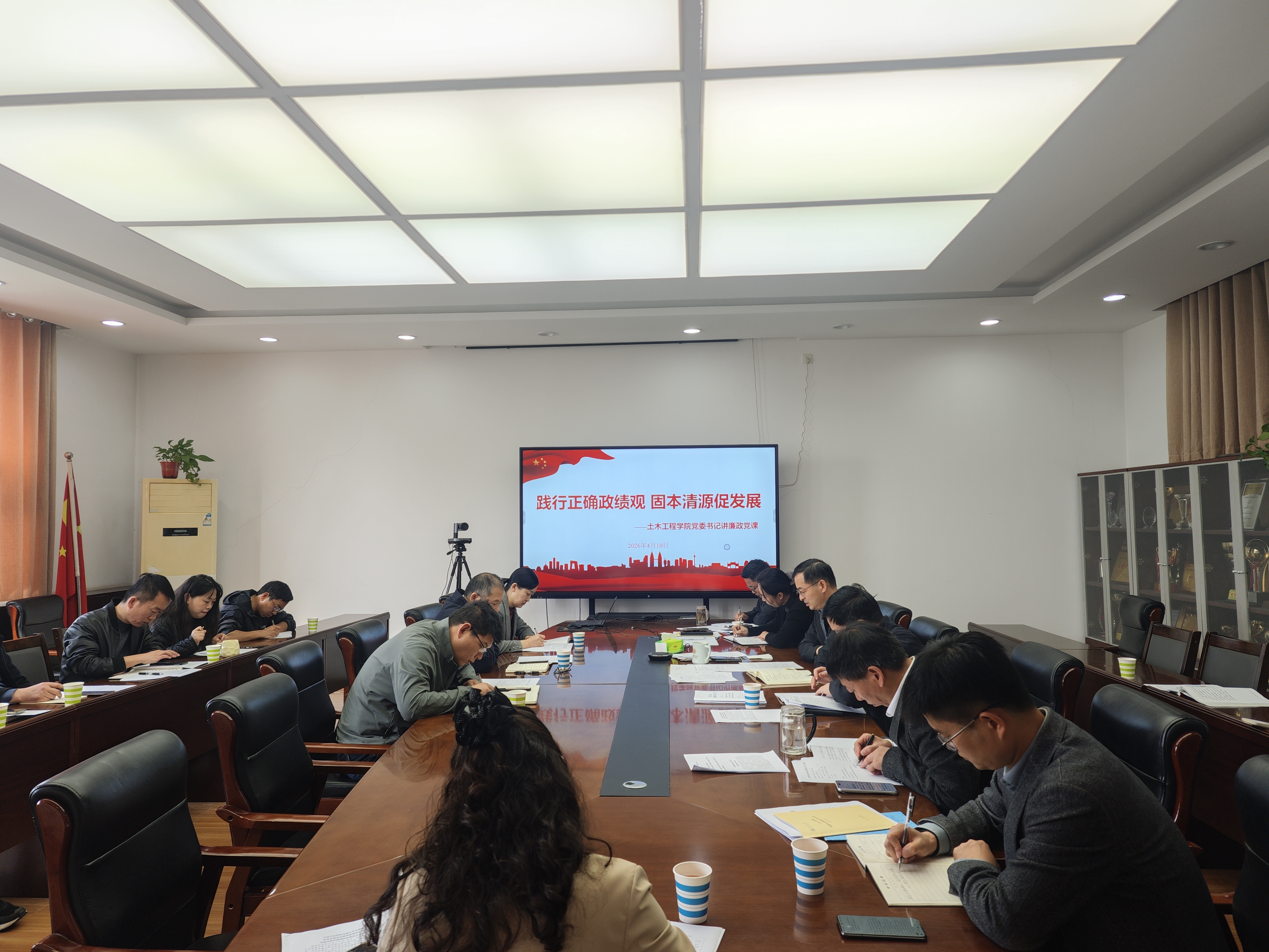 4月10日上午,土木工程学院党委书记常玉光在学院二楼会议室以“践行正确政绩观,固本清源促发展”为主题讲授廉政党课。