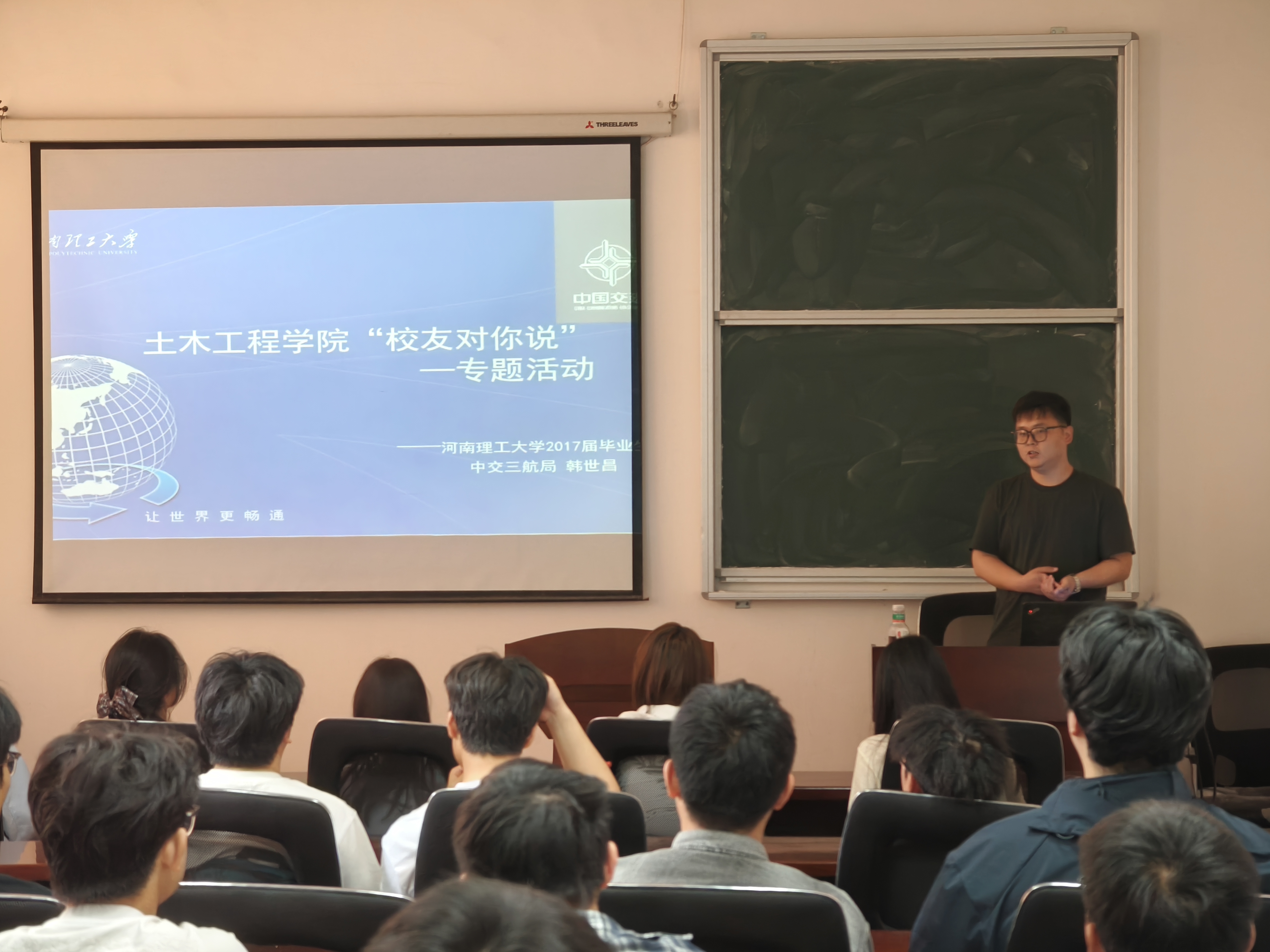 4月15日下午,土木学院岩土工程专业2017届校友、中交三航局分项目党支部书记韩世昌,受邀在该院124教室与学生代表开展“校友对你说”成长引航教育座谈。