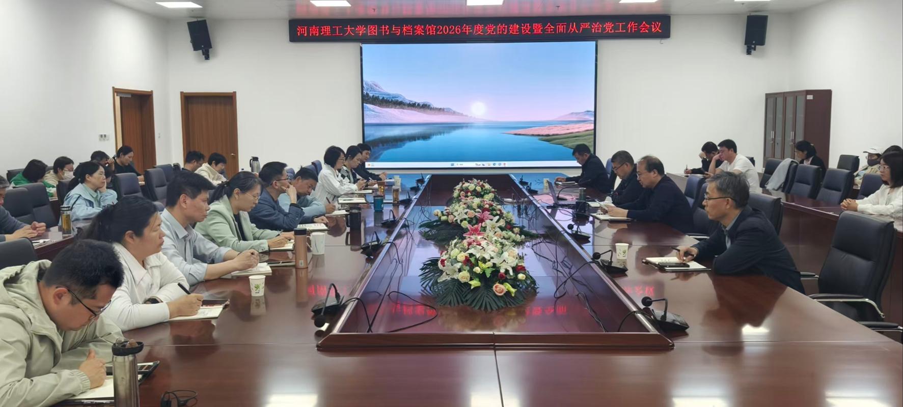 4月14日,图书与档案馆在第一会议室召开2026年党的建设暨全面从严治党工作会议。