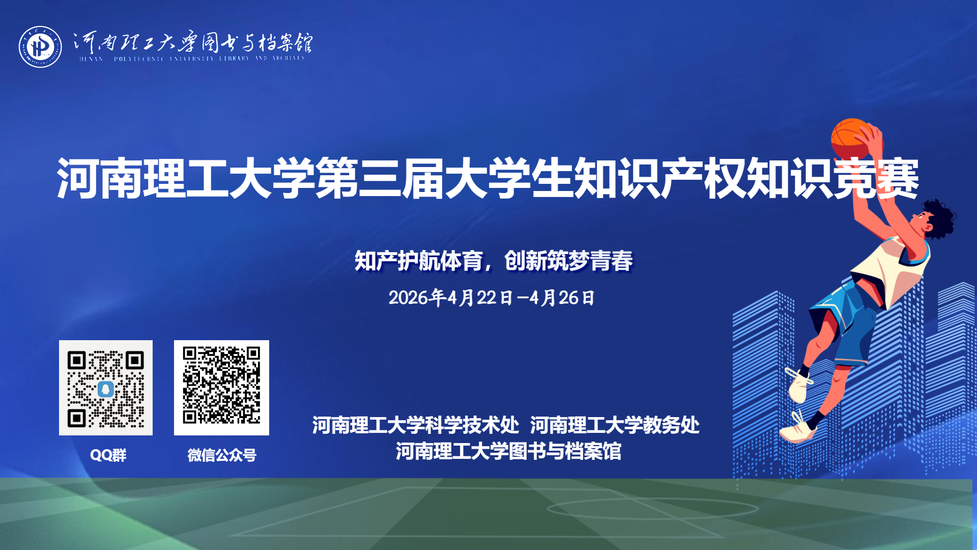 4月22日-26日、第26个世界知识产权日来临之际,学校组织举办了“知产护航体育,创新筑梦青春”为主题的第三届大学生知识产权知识竞赛。