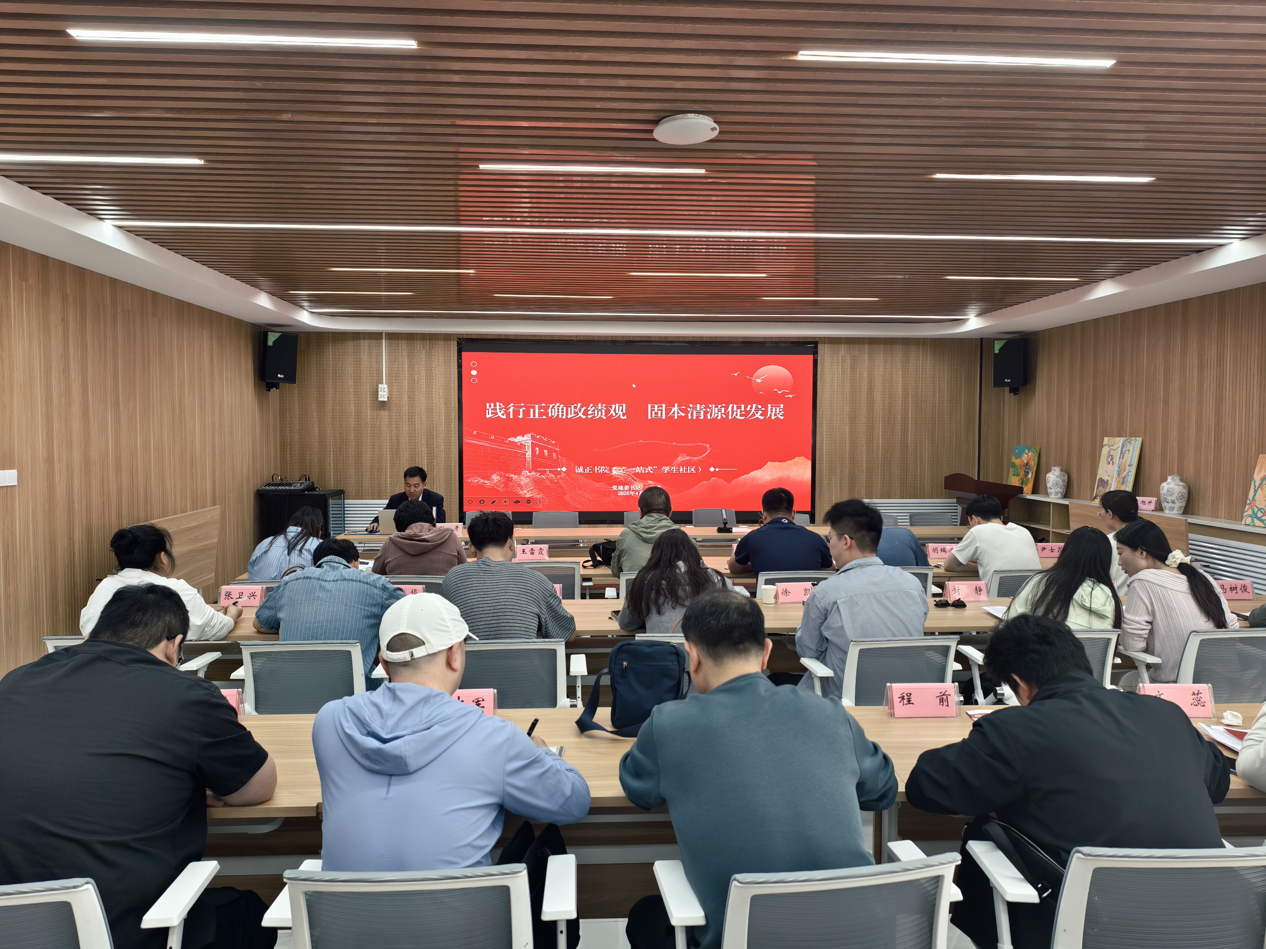 4月27日,诚正书院(“一站式”学生社区)党建委书记、管委会主任孙彦在社区210会议室,以“践行正确政绩观,固本清源促发展”为主题讲授廉政党课。